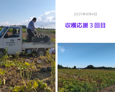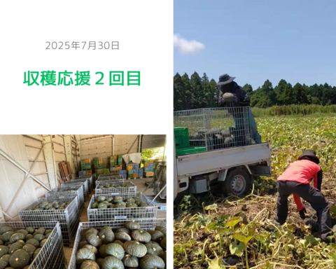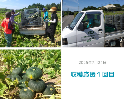 7月下旬から8月月初にかけて計3回、能登ハルサで生育し実ったかぼちゃをAVFグループ社員たち(各日7名ほど)が収穫の応援に行きました。